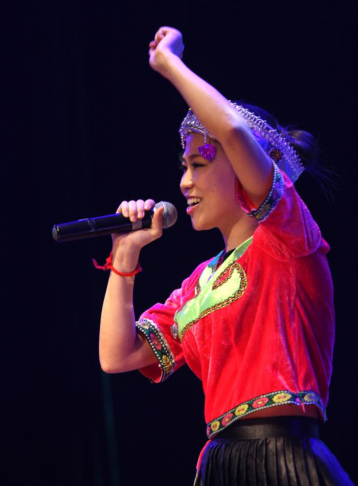 | 中国水利电力对外公司郭靖演唱《光荣绽放》。(孙荣刚 摄) |