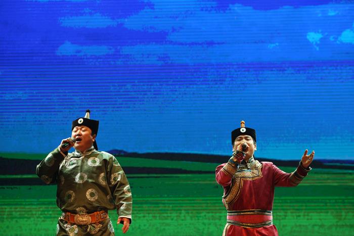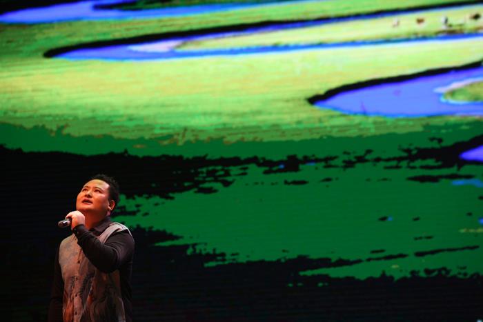 | 长江电力水电公司苏全演唱《父亲的草原母亲的河》。(孙荣刚 摄) |