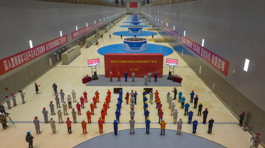 本网讯(谢泽)12月20日8时50分,随着9号机组正式并网运行,在建规模世界第一、装机规模全球第二的金沙江白鹤滩水电站16台百万千瓦机组全部投产发电,这标志着我国在长江之上全面建成世界最大清洁能源走廊。当日,全部机组投产发电仪式在白鹤滩水电站右岸厂房举行,三峡集团董事长、党组书记雷鸣山致辞并宣布全部机组投产发电,国家能源局云南监管办公室党组书记、监管专员郝瑞锋,国家电网副总经理、党组成员陈国平,哈电集团董事长、党委书记曹志安,东方电气党组副书记宋致远,一重集团副总经理、党委常委关永昌在视频分会场出席仪式并致辞。