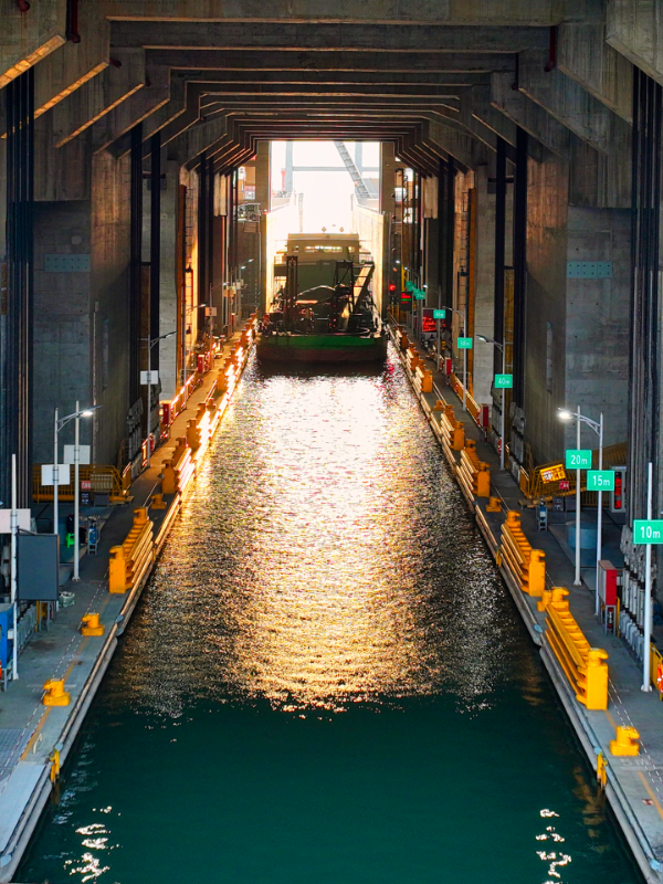 ▲ 船舶通过向家坝升船机。摄影:唐子稀