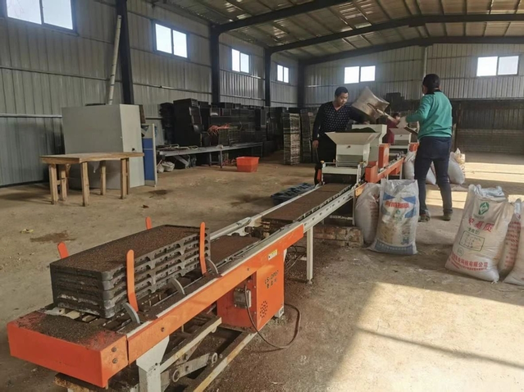 弹前乡是赣南富硒水稻主产区,但传统育秧依赖人工,出苗率低、成本高,制约规模化种植。为解决这一问题,2023年,三峡集团在当地建设了机械化育秧中心,建成437平方米钢架育秧棚、暗化催芽室及智能生产线,配备秧盘播种流水线、移动碎土机等设备,实现浸种、催芽、播种全流程机械化。