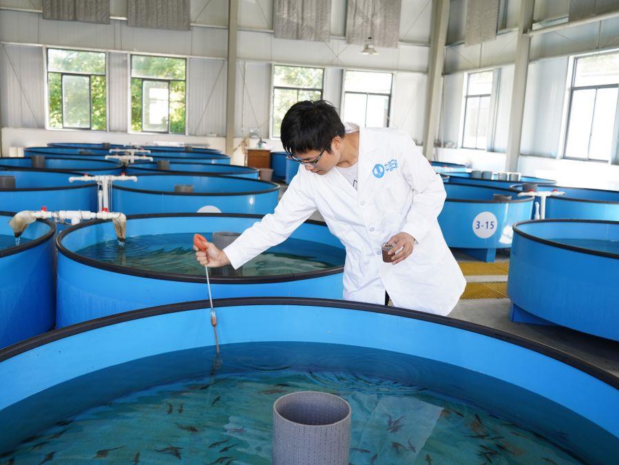 25万尾中华鲟稳定生长。张德志把为中华鲟宝宝们准备的。留守岗位看护中华鲟幼鱼。 郭晓莹 摄 张德志是三峡集团中华鲟研究所宜昌实验站站长。养殖着国内数量最大的...